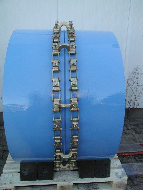 Flexible chain clamps for use above DN 150. Also suitable for pipe/flange connections. Thanks to the hook-in system it is possible with 1 chain clamp to clamp a whole range of pipe sizes without dismantling chain parts.